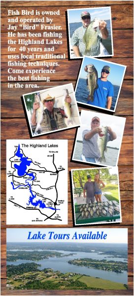 WHERE WE WILL FISH: Anywhere in the Highland Lakes, including Lake Buchanan, Inks Lake, Lake LBJ, Lake Marble Falls and Lake Travis. If you want me to decide on the best place, that is great, and I will take you to the best spots. Most often we fish on Lake LBJ. Click: Highland Lakes